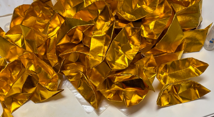 黄老板进一步介绍,目前市面上制作纸元宝的材料主要分为两类。一类是传统锡箔纸,也称金银箔纸,以竹浆或木浆纸为基底,镀上锡箔后再刷金色涂层即为金箔纸,不刷金则为银箔纸,这是老一辈最认可的材质,但成本相对偏高,成品单个售价可达0.5元左右。