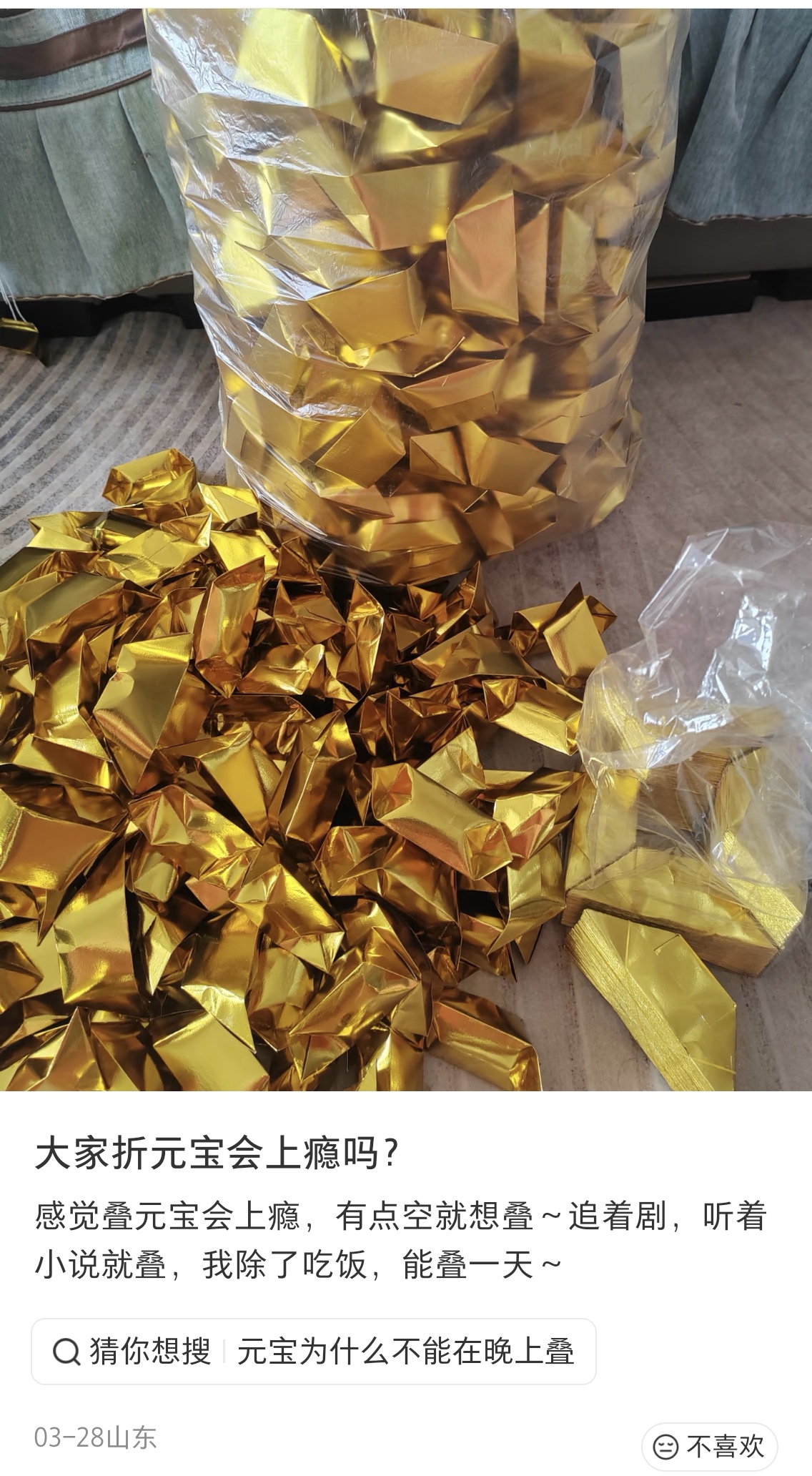 网友们晒出手折金元宝心得 图源网络