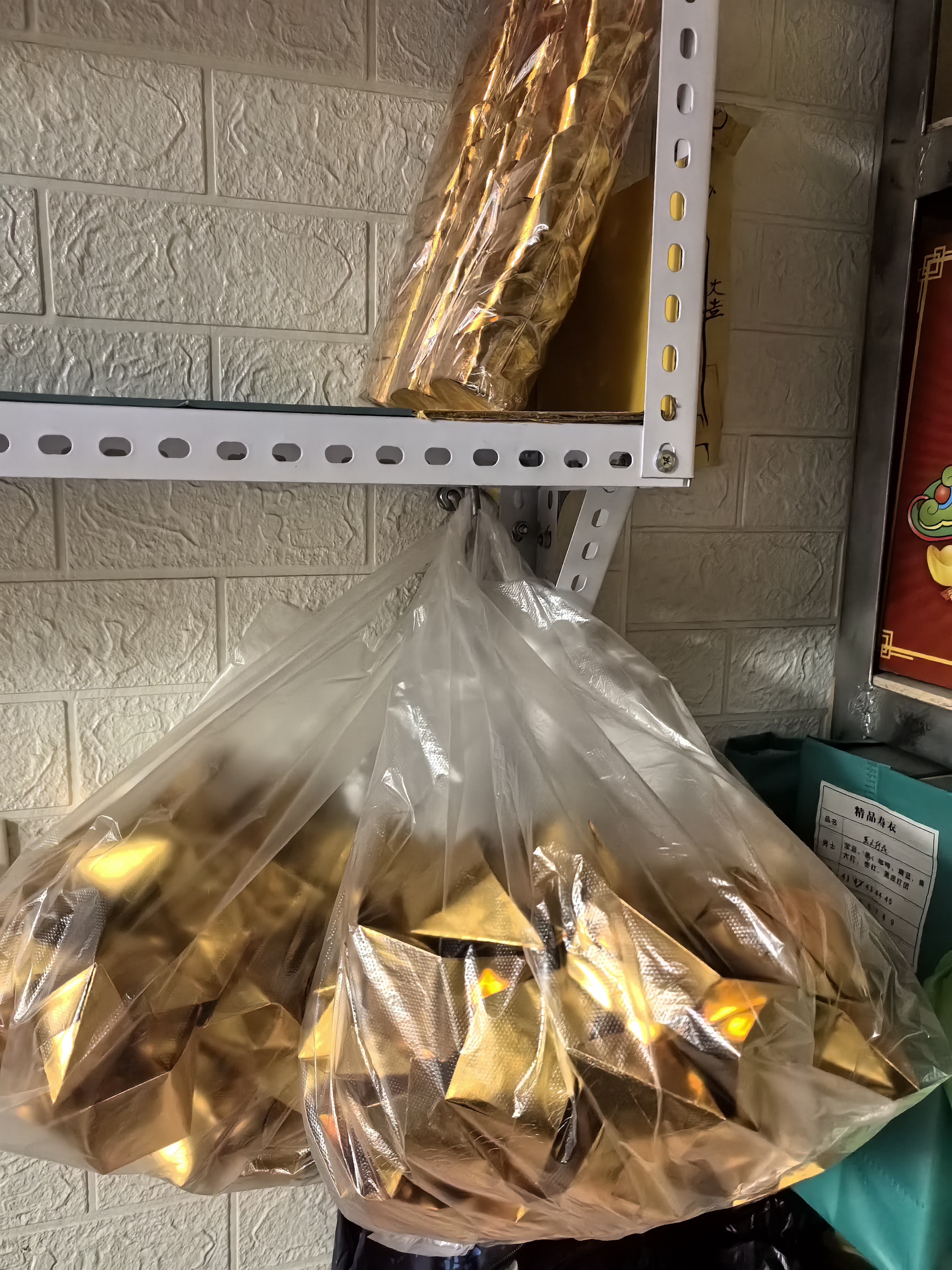 丧葬一条龙用品店里的锡箔纸“金元宝”